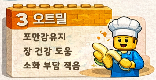 오트밀은 식이섬유가 풍부해 포만감 유지에 좋습니다.